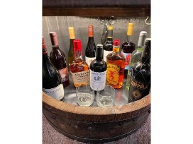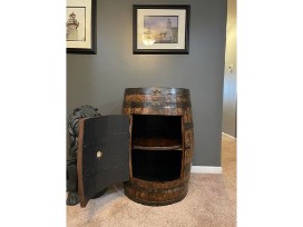 Stocked whiskey barrel cabinet