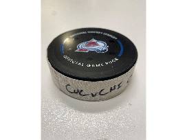 Avalanche vs. Chicago Goal #1 Puck by Valeri Nichushkin. Puck case included.