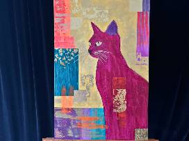 Cat-themed artwork in pink tones, measuring 36x24 inches.