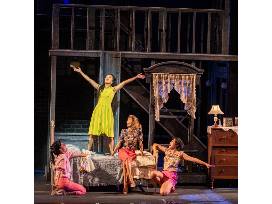 This stage used prop is a full-size quilt.
