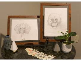 Stevan likes to look at pictures and then tries to draw them free hand. He likes National Geographic magazine and when he opened it, there were a few pictures of monkeys and from memorizing, that's when he decided to draw Mr. Monkey. He took lessons on drawing and that's what he really loves to do.