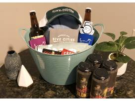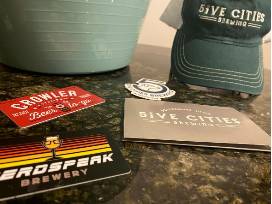 - 5ive Cities Brewing Giftcard, t-shirt (XL), sweatshirt (XL), stickers, hat, and koozie