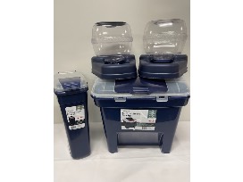 Item includes two Bergman Airtight Smart Storage canisters for dog, cat, bird, or small pet food, plus two water/feeding bowls.