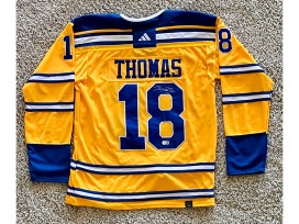 Robert Thomas was the youngest player on the Blue's roster when they won the Stanley Cup in 2019. Proudly display or wear this autographed Blues jersey with the Champions Patch, for years to come. He signed an eight year $65 million contract extension with the StL Blues, beginning in 2023-2024. This will keep him in STL though the 2030-2031 season.