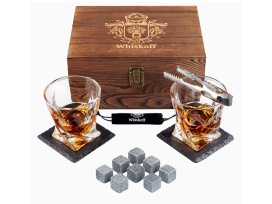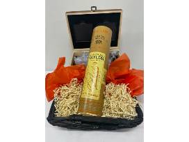 Made by hand, this Small Batch Bourbon Whiskey has been aged inside century old warehouses constructed by E.H. Taylor, Jr. Get this hard-to-find allocated bottle of whiskey from the Buffalo Trace distillery along with an all-in-one glassware gift box, which includes two whiskey glasses, and 8 natural granite whiskey stones to keep the drink cold instead of diluted. The velvet bag, tongs and 2 slate table coasters perfectly complement the bourbon gift set.