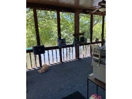 Screened in porch overlooks the quiet cove. Walk right down to the water from the porch. Rentals for boat & jet ski in the cove from Point Randall Resort.