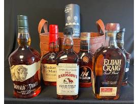 Enjoy some of Kentucky's finest with this basket offering a minimum of six bottles and some fun bourbon accessories.