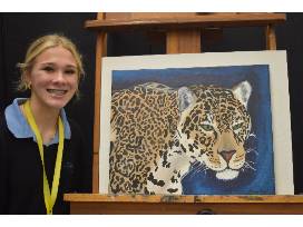 An acrylic depiction of a jaguar. Artist: Makaelin Dolle '25