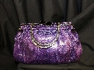 Show your wild side with this purple snakeskin handbag featuring a metal top handle and double clasp with Swarovski elements designed by Clara Kasavina.