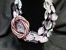 0Be bold with an amethyst, pink quartz and crystal necklace with leather embellishment and rhodium clasp created by Daniele Cornaggia.