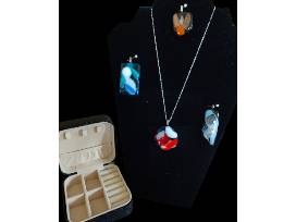 A pendant to match every outfit. Four stunning fused glass pendants of different colors to interchange on a silver chain along with a travel jewelry box.