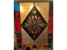 Painted antique hanging window pane by Ascherl Studios.