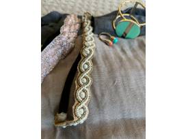 Boho bag, black and cream infinity scarf, bracelet, ring, beaded headbands.