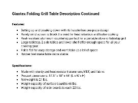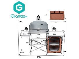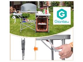 3. Folding Grill Table with 26" Tabletop and Detachable Windscreen by Giantex. Portable bag included. Take all the convenience and comforts of home on your next outdoor adventure with this foldable camping grilling table in all in durable, portable package. This outdoor kitchen features a large surface area, two side tables, a shelf and zippered bag perfect for storage. Retail value is $89.95. Donated by Giantex.