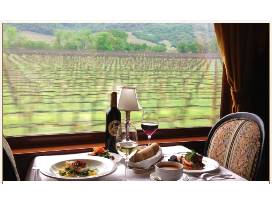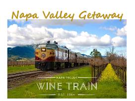 1. Gourmet Dinner Package for Two Guests aboard the Napa Valley Wine Train. Enjoy a 2-hour train journey with sparkling wine and a multiple course gourmet dinner. Dinner experience includes travel from Napa to Rutherford and return. Valued at $370. Donated by the Napa Valle Wine Train.
