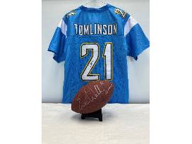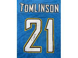 LaDainian Tomlinson #21 San Diego Chargers Autographed Jersey in Powder Blue. Priceless. Tomlinson was an American running back selected by the San Diego Chargers with the fifth overall pick of the 2001 NFL Draft. He spent nine years playing for the Chargers and earned five Pro Bowl appearances, three Associated Press first-team All-Pro nominations, and two NFL rushing titles. Voted NFL MVP in 2006 after breaking the record for touchdowns in a single season.