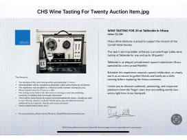 This year's winning bidder will enjoy a private Finger Lakes wine tasting at Tableside for you and up to 19 guests!