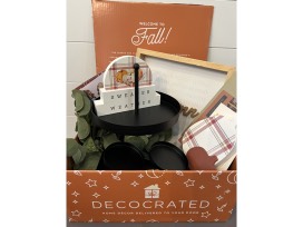 Decocrated: A Home Decor Subscription Box Filled with Fall Home Decor (Includes a Two-Tiered Tray, 3 Pillar Candle, Fall/Halloween Sign, & Multiple Pieces of Art)