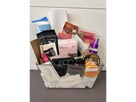 - Beauty products including: Amika three piece hair products, Aussie leave in conditioner, Flour setting powder, mini hand sanitizer, Revolution Pro define and fill brow pencil, Dior Back Stage rosy glow blush in pink, Encore Dose of Colors, makeup remover cloth, beauty blender sponge, NARS products, variety of beauty product samples, NYX brown liquid liner, cotton rounds, makeup remover, NYX born to glow two pack, Grande Lash-MD mash enhancing serum, NYX eyebrow gel, concealer, MAC products, eyelash set