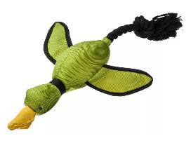 The Hyper Pet Flying Duck Slingshot Dog Toy will be a hit with any dog that likes to chase. The thumb released slingshot has a bungee neck that launches the toy up to 100 feet. The toy includes a squeaker for added excitement. The Flying Duck even floats in water for summertime fun. Made of durable ballistic material, the Flying Duck meets or exceeds child toy safety standards.