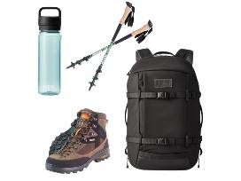 Gear up for your next hike with a new pair of boots, backpack, water bottle, and trekking poles!