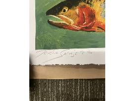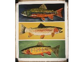 Brookie, brown, rainbow trout. 21"x24", framed.