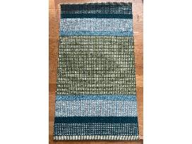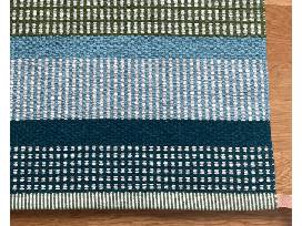 1Kasthall handwoven rug - 27" x 48". Shades of blue & green with leather detailing.