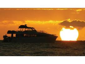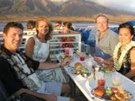Gift certificate for two on a Pacific Whale Foundation Premium Sunset Dinner cruise out of Lahaina which includes guaranteed private outside table, four course meal with three complimentary alcoholic drinks.