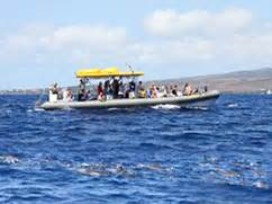 Enjoy a snorkeling adventure aboard Maui Adventure Cruise's unique 50ft Super-raft. Cross the auau channel to the island of Lanai where we will visit pristine snorkel spots off the pineapple island's coast. Witness the playful spinner dolphins and during whale season, enjoy the sights of the visiting humpback whales. This is a 5 hour tour, starting at the Lahaina Harbor at 7:30am, and returning to the harbor by 12:30.