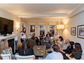 Living Room Laughs curates high-quality stand-up comedy shows in people's living spaces, restaurants and off-site locations. The show features several professional NYC comedians who are specifically selected by your host and Living Room Laughs founder, Michelle Slonim, to best fit your taste and style of humor.