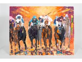 Boasting race horses and their riders, it is reminiscent of Oaklawn or the Kentucky Derby.