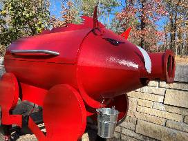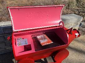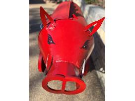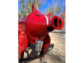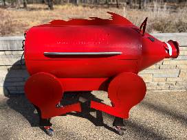Be the talk of the tailgate or backyard feast with this custom fabricated Traeger Lil' Pig 50" free standing pellet grill, made into an Arkansas Razorback.