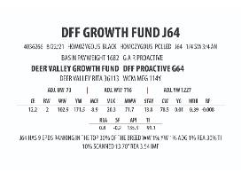 J64 HAS 9 EPDS RANKING IN THE TOP 30% OF THE BREED WW 1% YW 1% ADG 1% REA 30% TI 10% SCANNED 13.70" REA 3.54 IMF