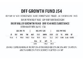 J54 HAS 12 EPDS RANKING IN THE TOP 35% OF THE BREED CED 25% BW 30% WW 10% WR 5% ADG 5% MARB 25% TI 15% SCANNED 11.00" REA 4.14 IMF