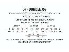 J03 HAS 9 EPDS RANKING IN THE TOP 35% OF THE BREED WW 3% YW 10% MILK 25% MARB 20% API 35% TI 10% SCANNED 13.00" REA 2.75 IMF