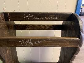 Saddle Rack autographed by Dan James, Ty Harris, and Joel Harris.
