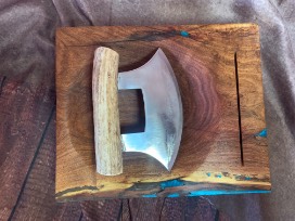 Texas Mesquite wooden Ulu Knife set with Chopping board mezzaluna