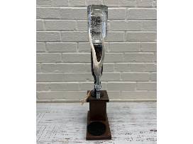 With a classic dark stained pinewood base and chrome-plated faucet, antler handle, and cowhide decorative sleeve, this piece is handmade with a unique design, and can hold up to a 1.75-liter bottle.
