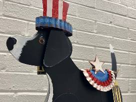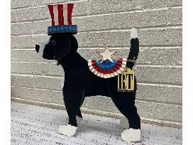 Bid to win this adorable dress-up pet from The Round Top Collection! This Dress-Up Rescue Dog comes with the Dress-Up Uncle Sam Costume too!