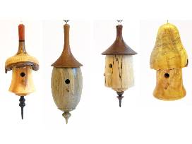 Some of the designs are inspired by creations of internationally known woodturner Dale Nish. Dale has passed now, but he leaves a legacy of innovation and sometimes a sense of whimsy in his work. The bird-house theme is his, but specific design elements are mine.
