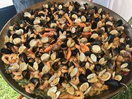 Traditional paella cooked in your place and served buffet style from the paella pan. Salad and bread included. Choose from the three paella options below.