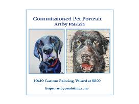 - Pet Portrait: Custom commissioned pet/animal portrait. 10x10 Canvas Painting of a beloved pet. Painting done by Patricia Wilson-Reynolds ($350 Value)