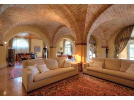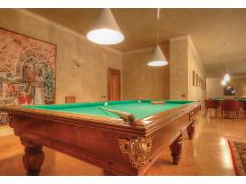 Going down to the lower floor, there is a billiard room and a large rustic dining room for banquets, a recreation room with a wet bar, a kitchen, a secondary bathroom, and a laundry room. From this floor, you can also get to the charming basement cellar that features traditional brick vaults.