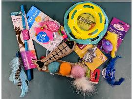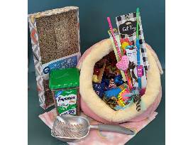 Your furry feline will never be bored with toys for year! Also includes scratching board, blanket, treats, and a litter scoop.
