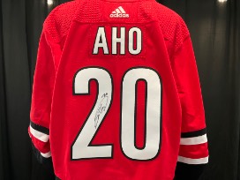 Sebastian Aho #20 signed game worn jersey 2020-21 2nd Set Size 56.