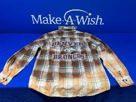You'll be the coolest fan in the stadium with this vintage upcycled Bronco flannel with a vintage Denver Broncos logo sewn on back with bleach effect! Size women's large.