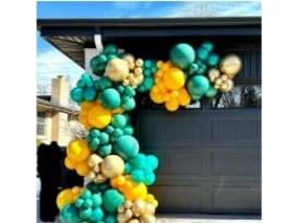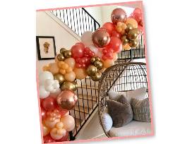 Wow your party guests with this 6 ft organic balloon garland fully styled, ready to hang. (Up to 3 colors of your choice, no add ons.)