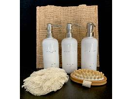 Turn your home into your very own spa with this spa bundle package, which includes a 16 oz. shampoo dispenser, a 16 oz. conditioner dispenser, a 16 oz. body wash dispenser, a massaging brush, a loofah and a few sprigs of eucalyptus to hang in the shower. Then, stimulate healthy hair growth with this package, which includes Stimul8 Shampoo, Exhilar8 Conditioner, Acceler8 Hair Booster and Nutriments.
