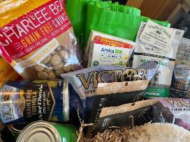 2-5lb. bags of Victor Super Premium Dog Food, 2 cans of Nummy Tum-Tum Organic Dog Food, 4 cans of Nurti-Source Dog Food, 2 bags of Charlee Bear Grain Free Treats, 2 bags of Vetri Science Canine Multi-Vitamins, 2 bags of Nurti-Source Salmon Dog Treats, 2 bags of Charlotte's Web Hip and Joint Hemp Chews, 2 Wealth of Health reusable shopping bags and 2-$10 gift cards to Wealth of Health Natural Market.