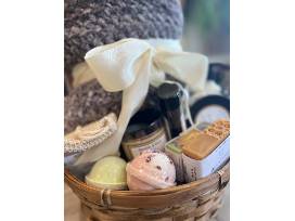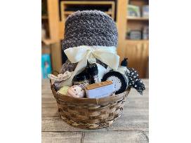 Cocoa Butter Cashmere Goat Milk Lotion, Cocoa Butter Cashmere Sugar Scrub, Amber & Rosewood Natural Deodorant, Fresh Fig Whipped Body Butter, Clean Hippie, Milk & Honey, and Lavender Hand Crafted Soaps, Biodegradable Natural Sisal Soap Saver Pouch, Two bath bombs and a Idaho Huckleberry Nourishing Lip Balm plus a handmade blanket to cuddle into. What more do you need on a cold winter night?